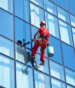 Клининговая компания оказывает услуги по очищению окон производственных и жилых построек, бизнес-центров, коттеджей и офисных строений любого уровня сложности и на любой высоте методом промышленного альпинизма.