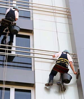 Для того, чтобы помыть окна балконов и лоджий на верхних этажах высотных зданий и фасады домов в труднодоступных местах работники верхолазы используют специальное альпинистское снаряжение и веревки. Оно применяется в целях безопасности верхолазов и служит для них надежной страховкой во время выполнения работ на высоте.